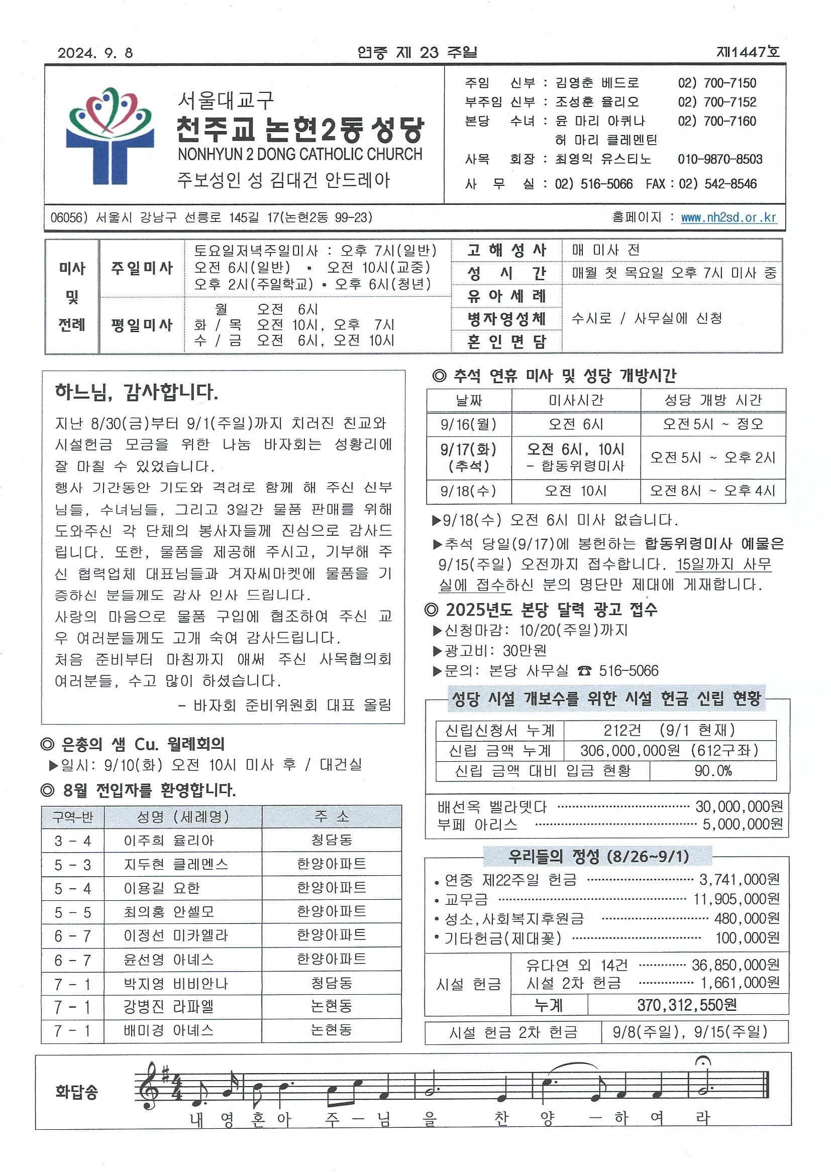 Á¦¸ñ ¿¬Áß Á¦23ÁÖÀÏ(2024³â 9¿ù 8ÀÏ) ÁÖº¸