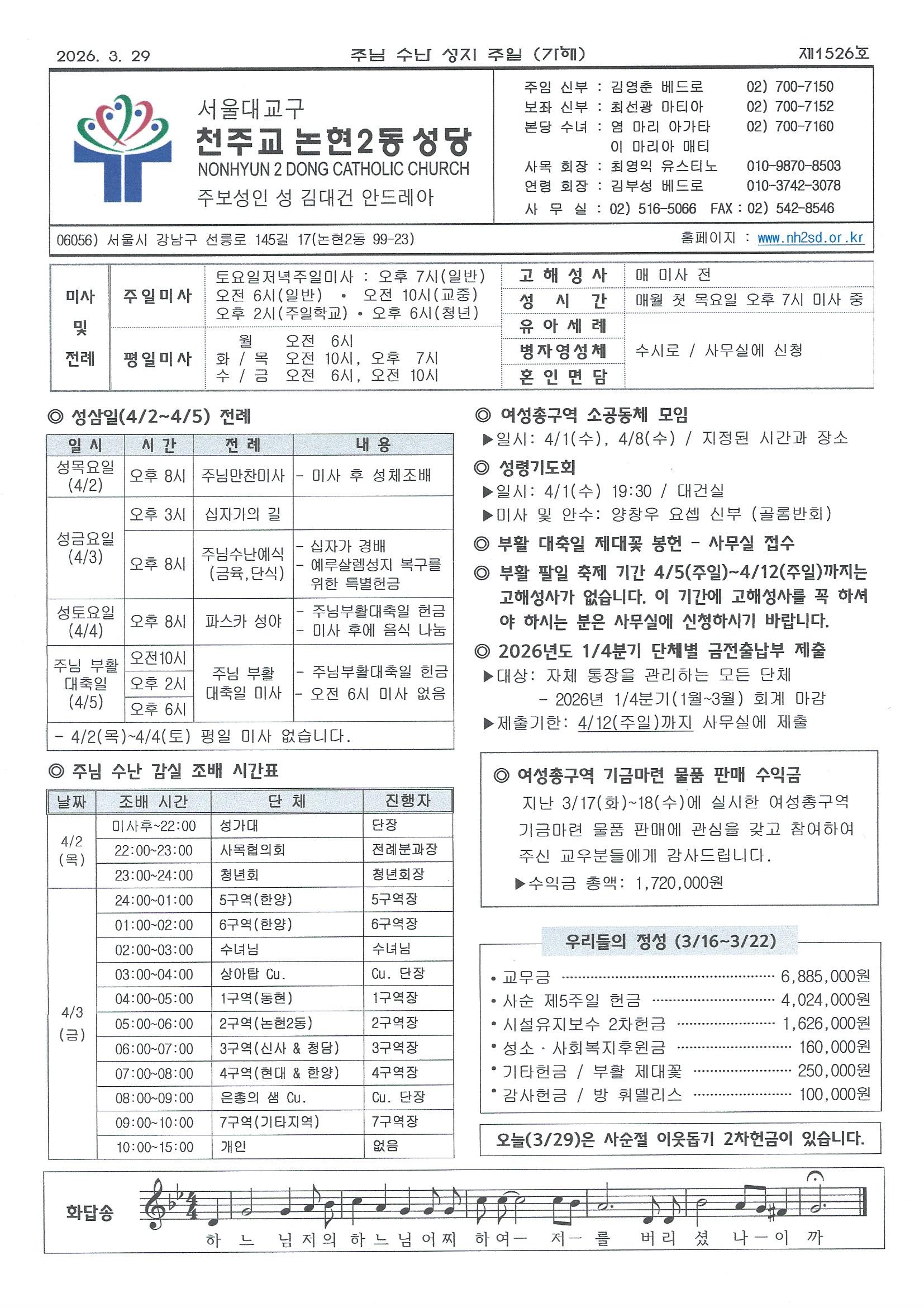 ÁÖ´Ô ¼ö³ ¼ºÁö ÁÖÀÏ(2026³â 3¿ù 29ÀÏ) ÁÖº¸