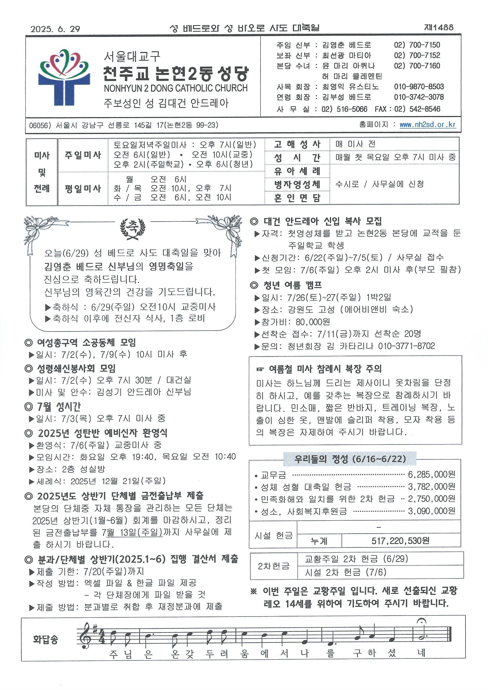 ¼º º£µå·Î¿Í ¼º ¹Ù¿À·Î »çµµ ´ëÃàÀÏ(2025³â 6¿ù 29ÀÏ) ÁÖº¸