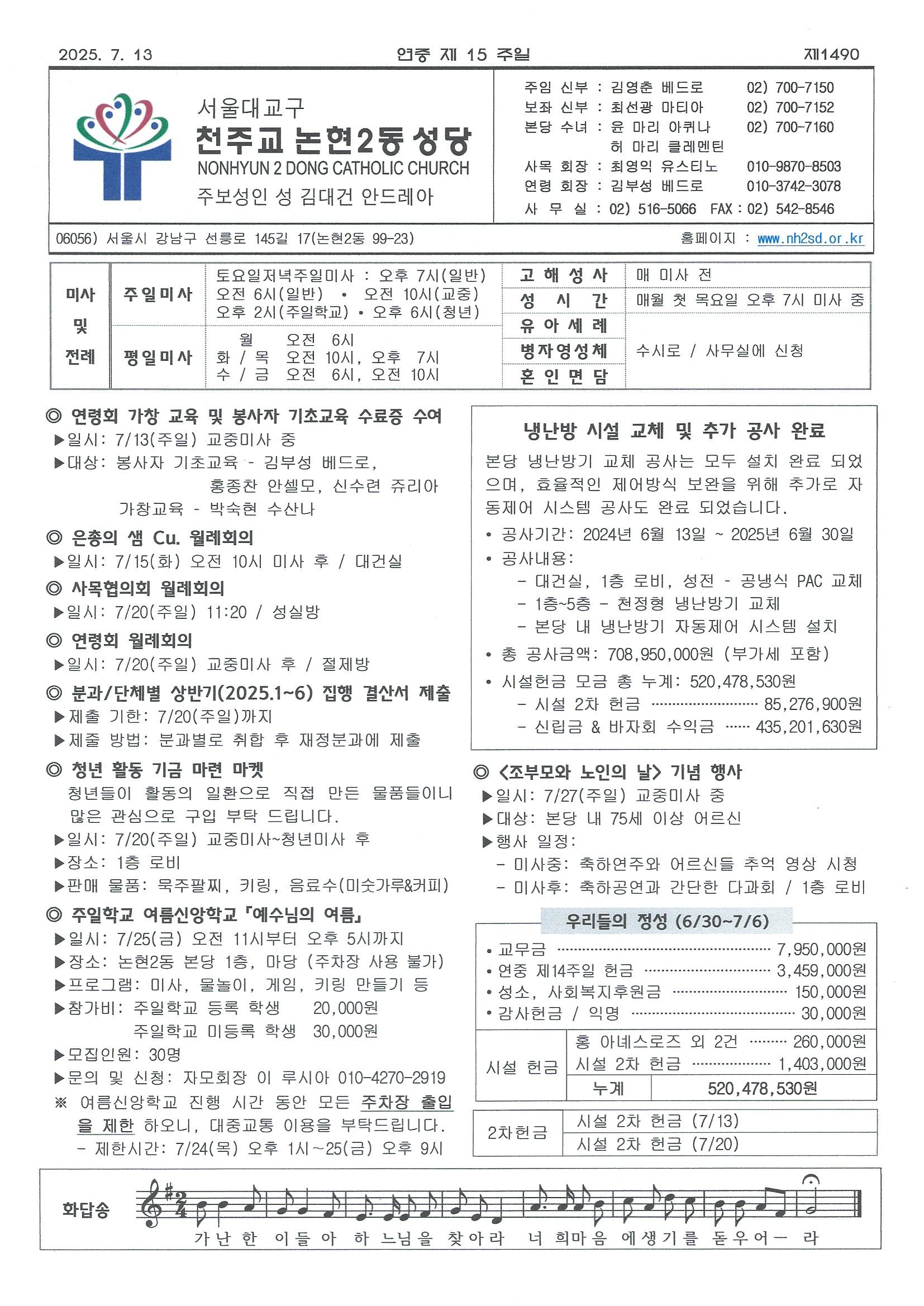 ¿¬Áß Á¦15ÁÖÀÏ (2025³â 7¿ù 13ÀÏ) ÁÖº¸