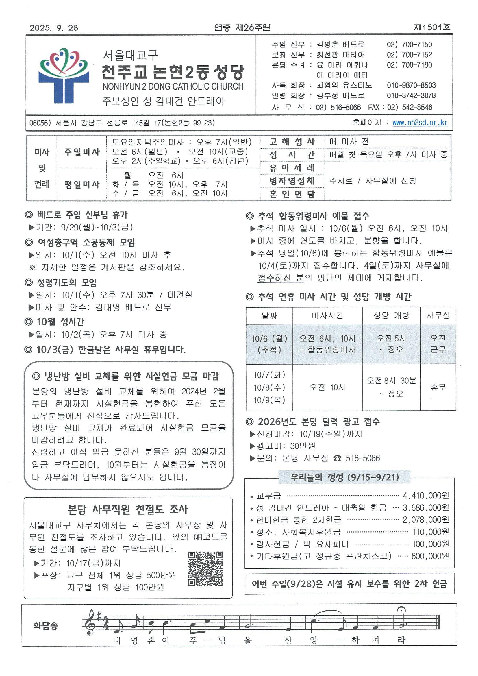 ¿¬Áß Á¦26ÁÖÀÏ(2025³â 9¿ù 28ÀÏ) ÁÖº¸
