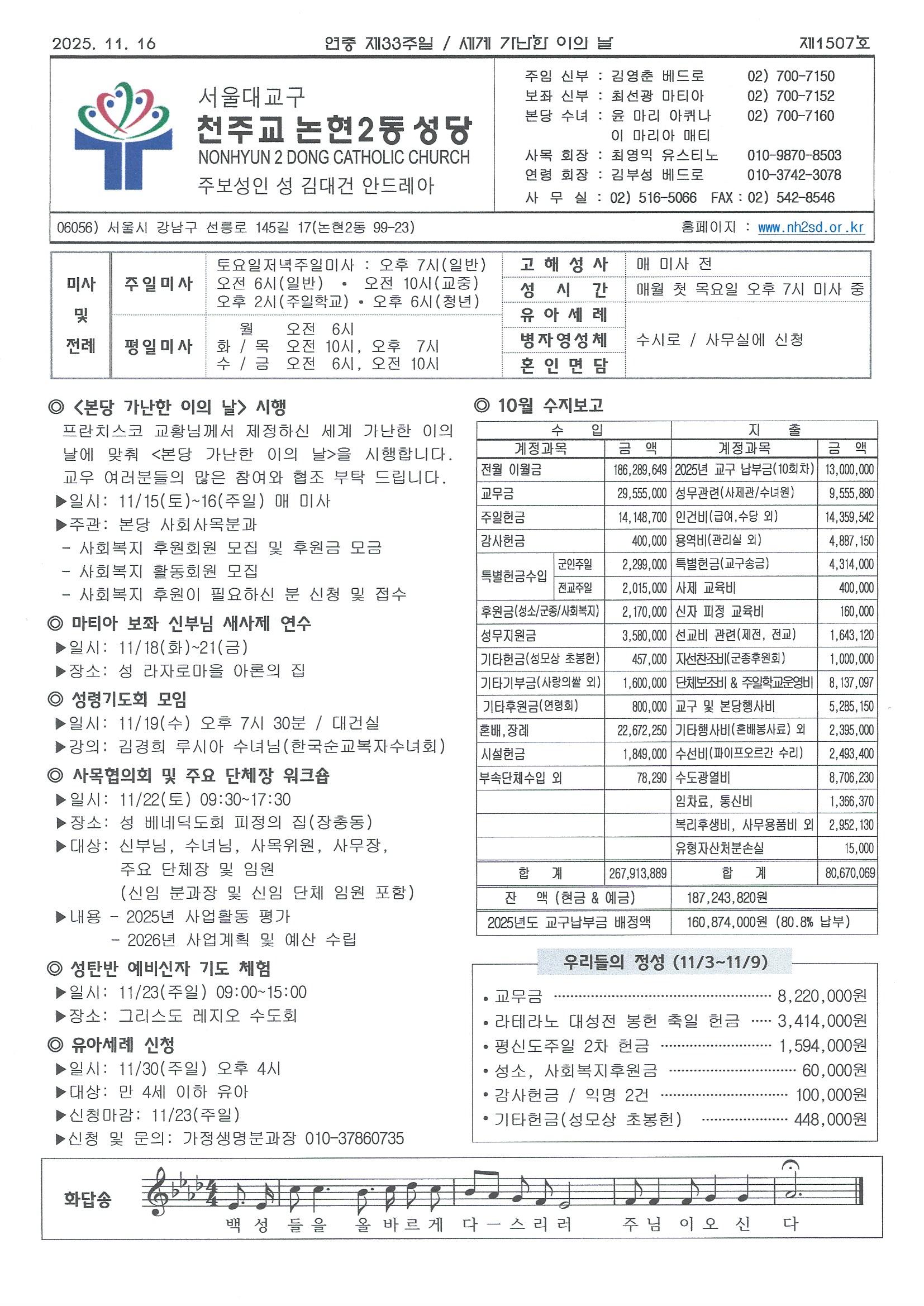 ¿¬Áß Á¦33ÁÖÀÏ(2025³â 11¿ù 16ÀÏ) ÁÖº¸