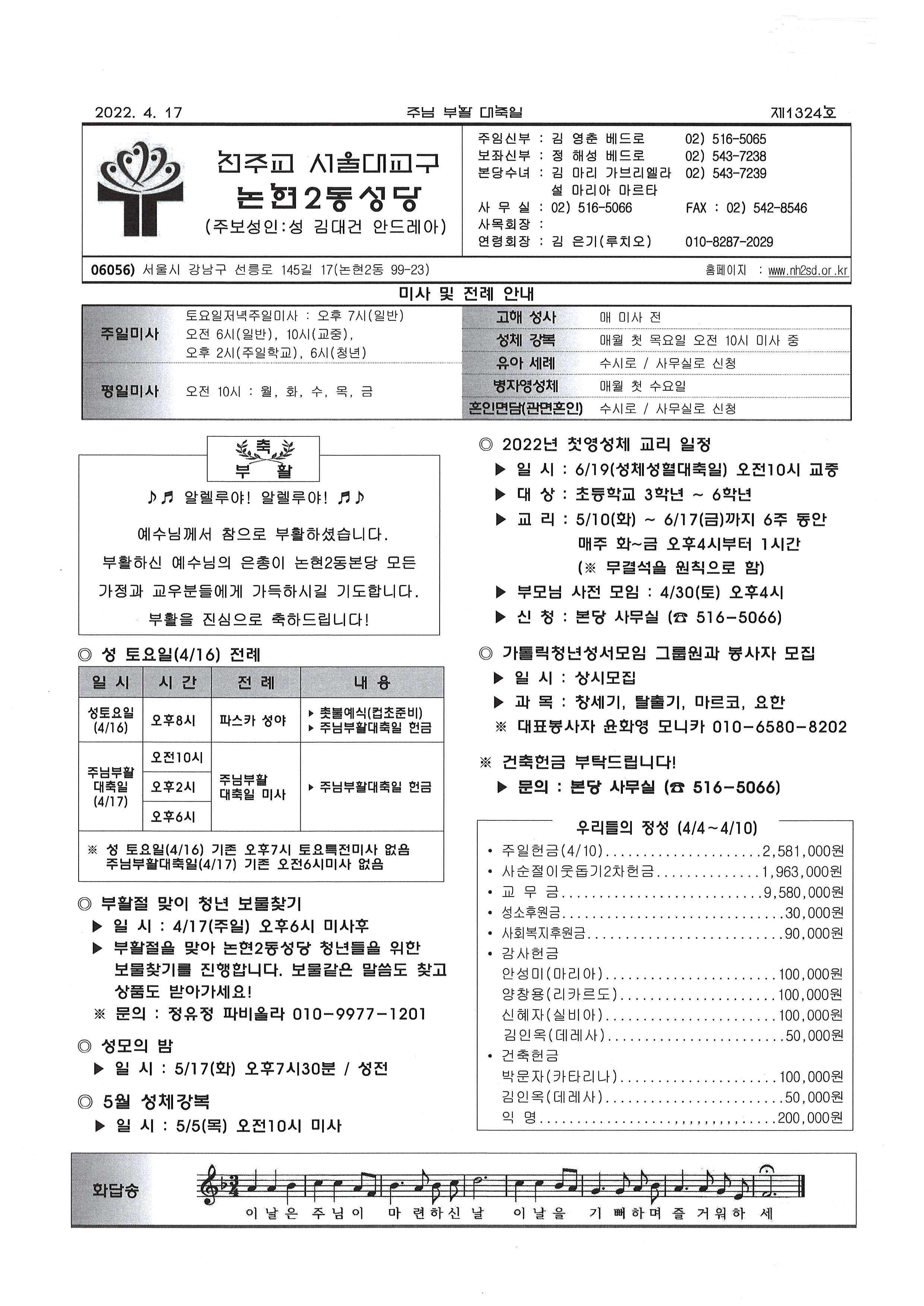 ÁÖº¸(2022³â4¿ù17ÀÏ-ÁÖ´ÔºÎȰ´ëÃàÀÏ)