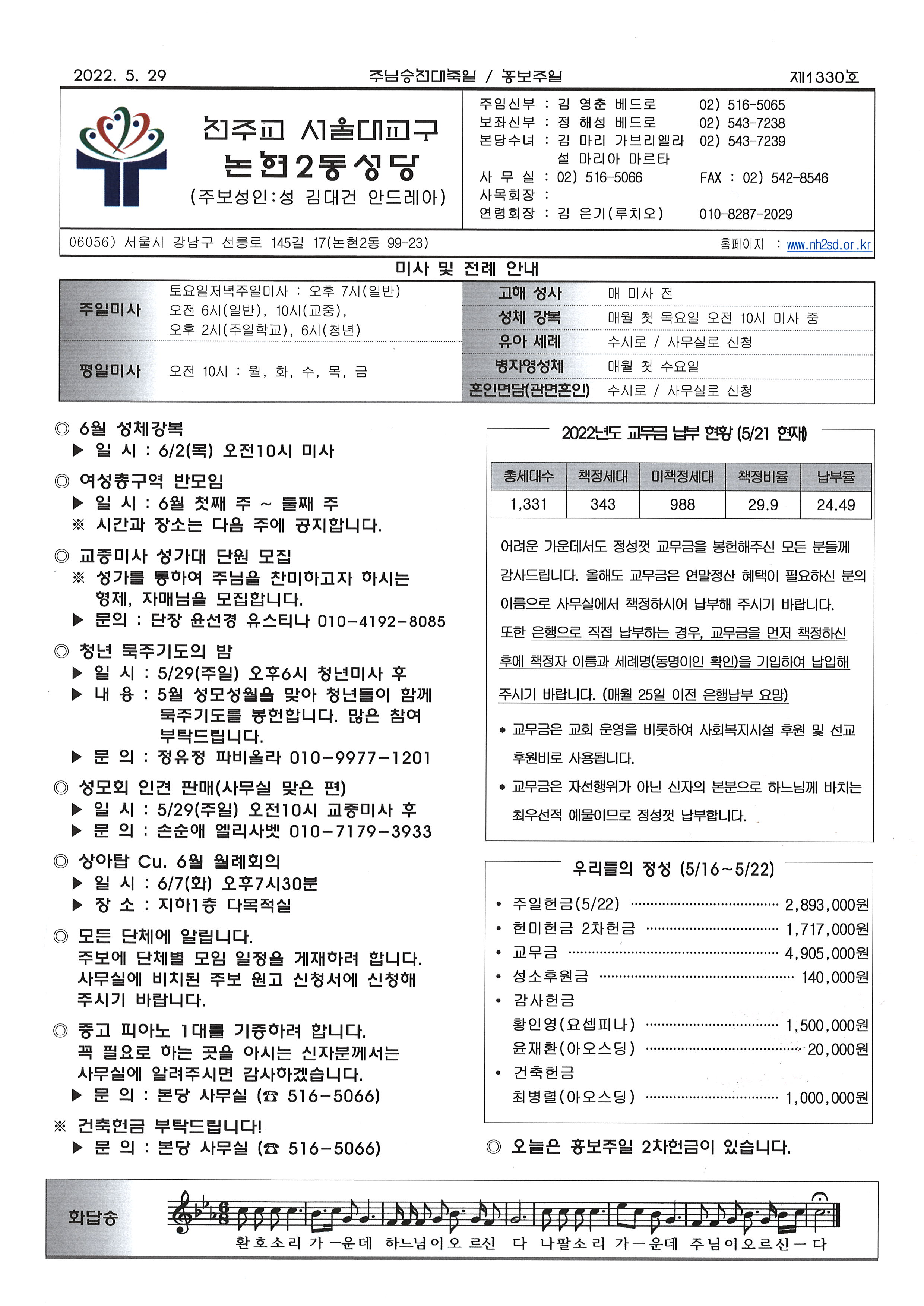 ÁÖº¸(2021³â5¿ù29ÀÏ-ÁÖ´Ô½Âõ´ëÃàÀÏ/È«º¸ÁÖÀÏ,û¼Ò³âÁÖÀÏ)