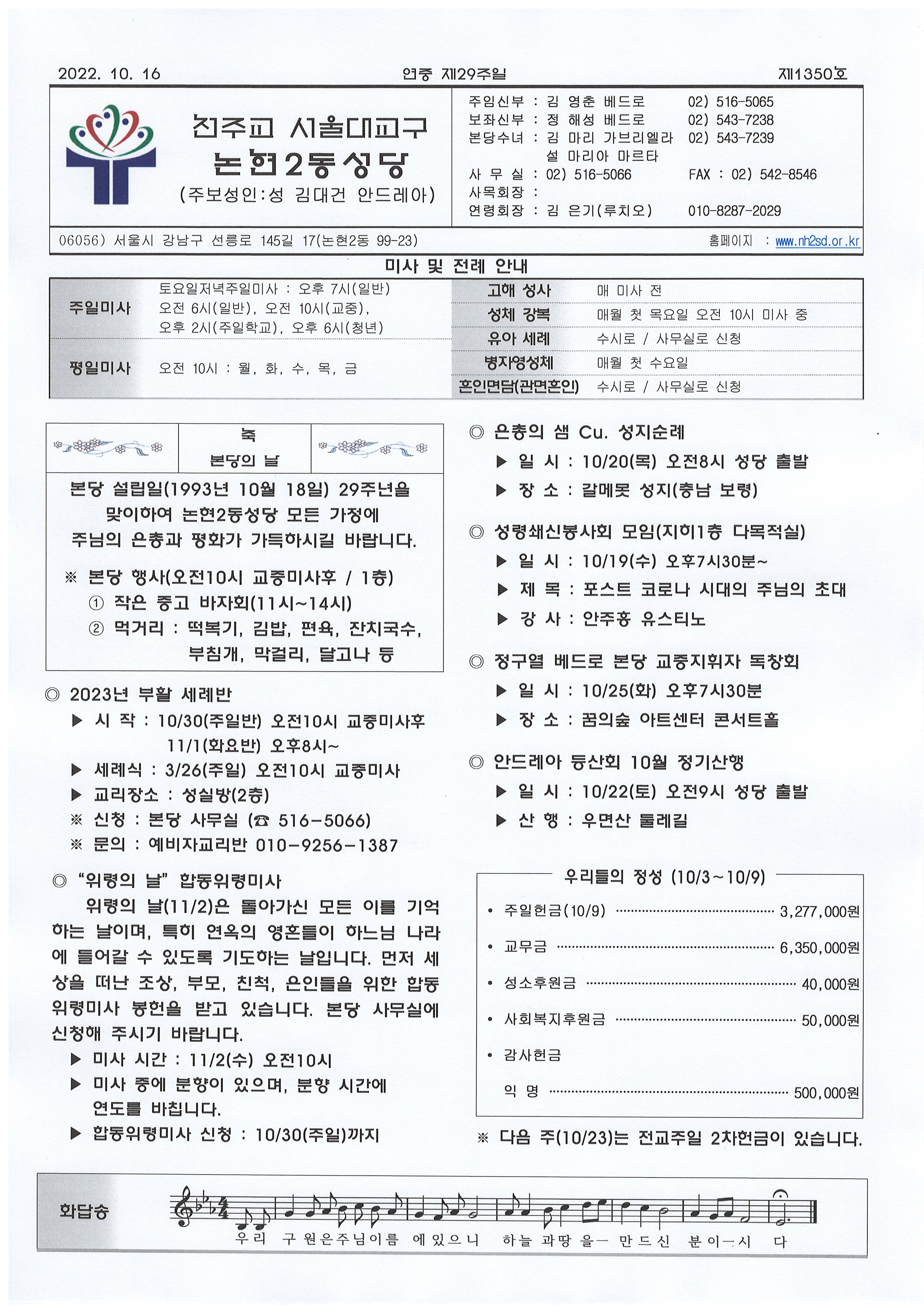 ÁÖº¸(2022³â10¿ù16ÀÏ-¿¬ÁßÁ¦29ÁÖÀÏ)