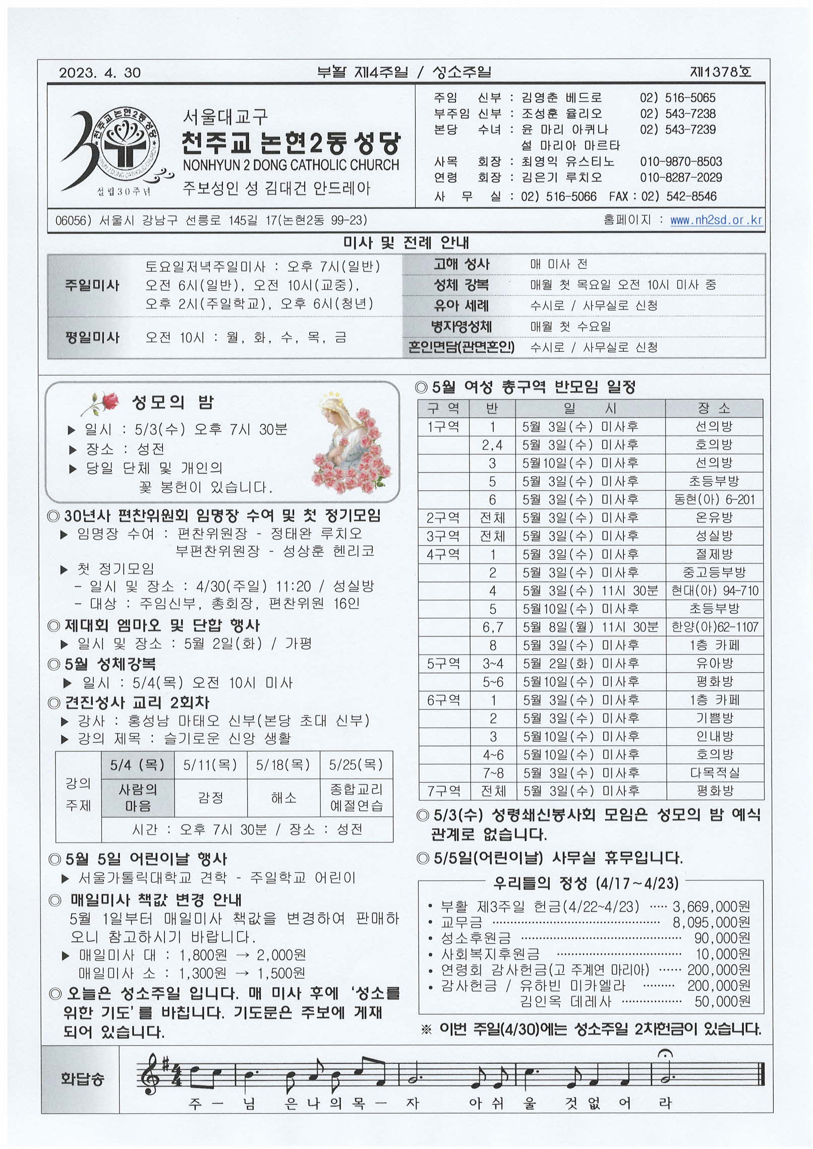 ºÎȰ Á¦4ÁÖÀÏ / ¼º¼ÒÁÖÀÏ (2023³â 4¿ù 30ÀÏÀÚ ÁÖº¸)
