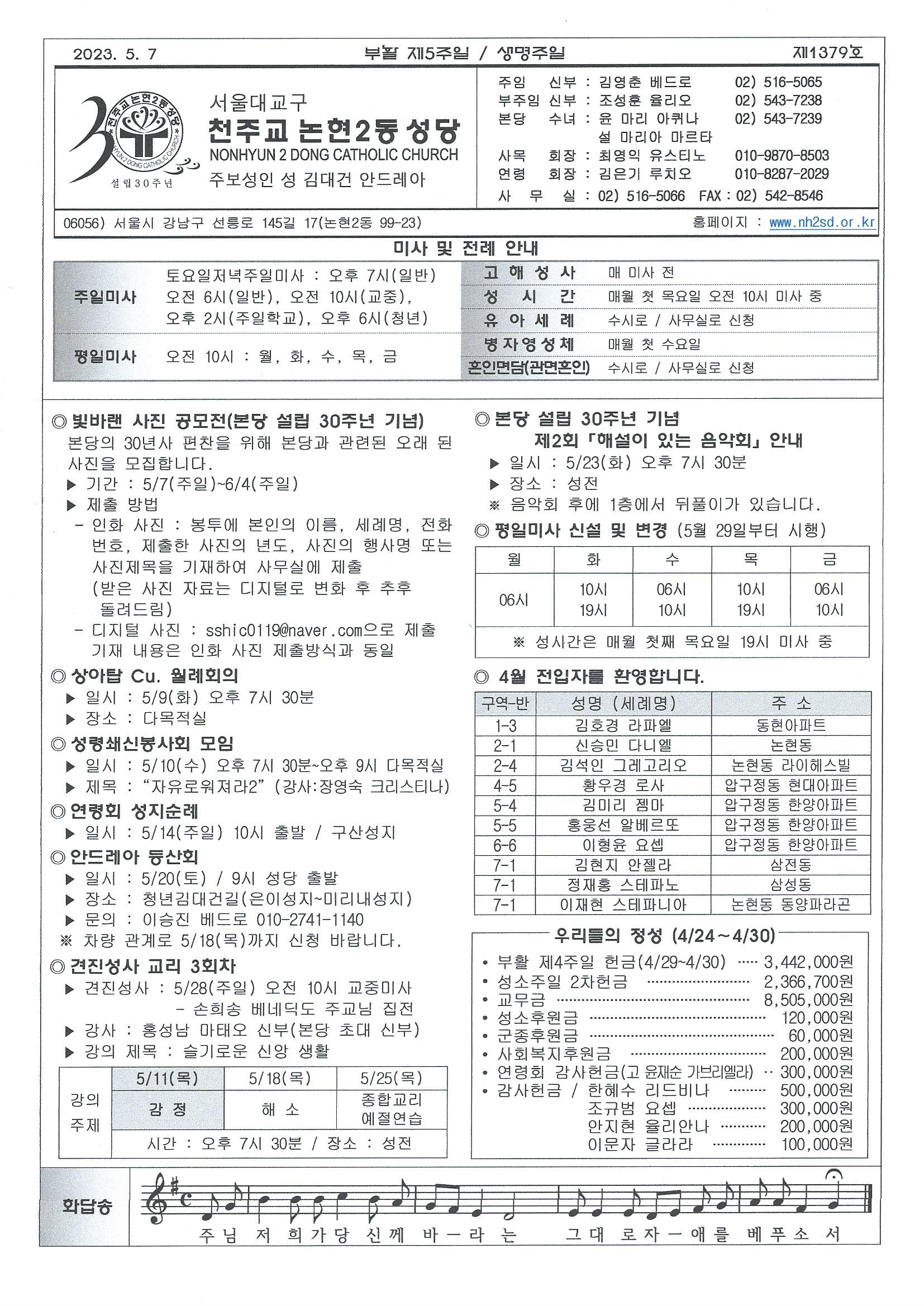 ºÎȰ Á¦5ÁÖÀÏ, »ý¸íÁÖÀÏ ÁÖº¸ (2023³â 5¿ù 7ÀÏ)