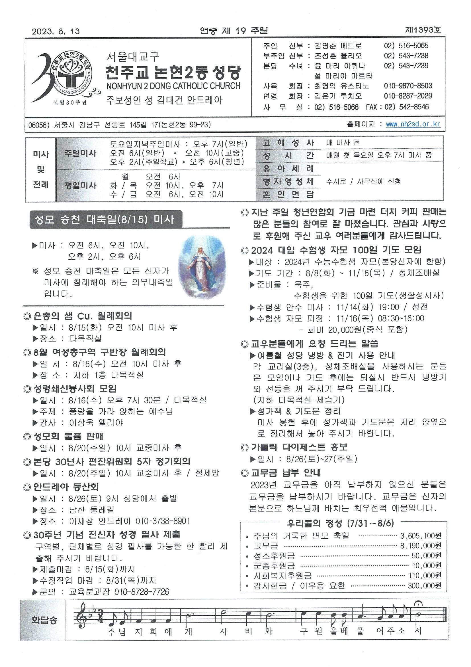¿¬Áß Á¦19ÁÖÀÏ(2023³â 8¿ù 13ÀÏ) ÁÖº¸