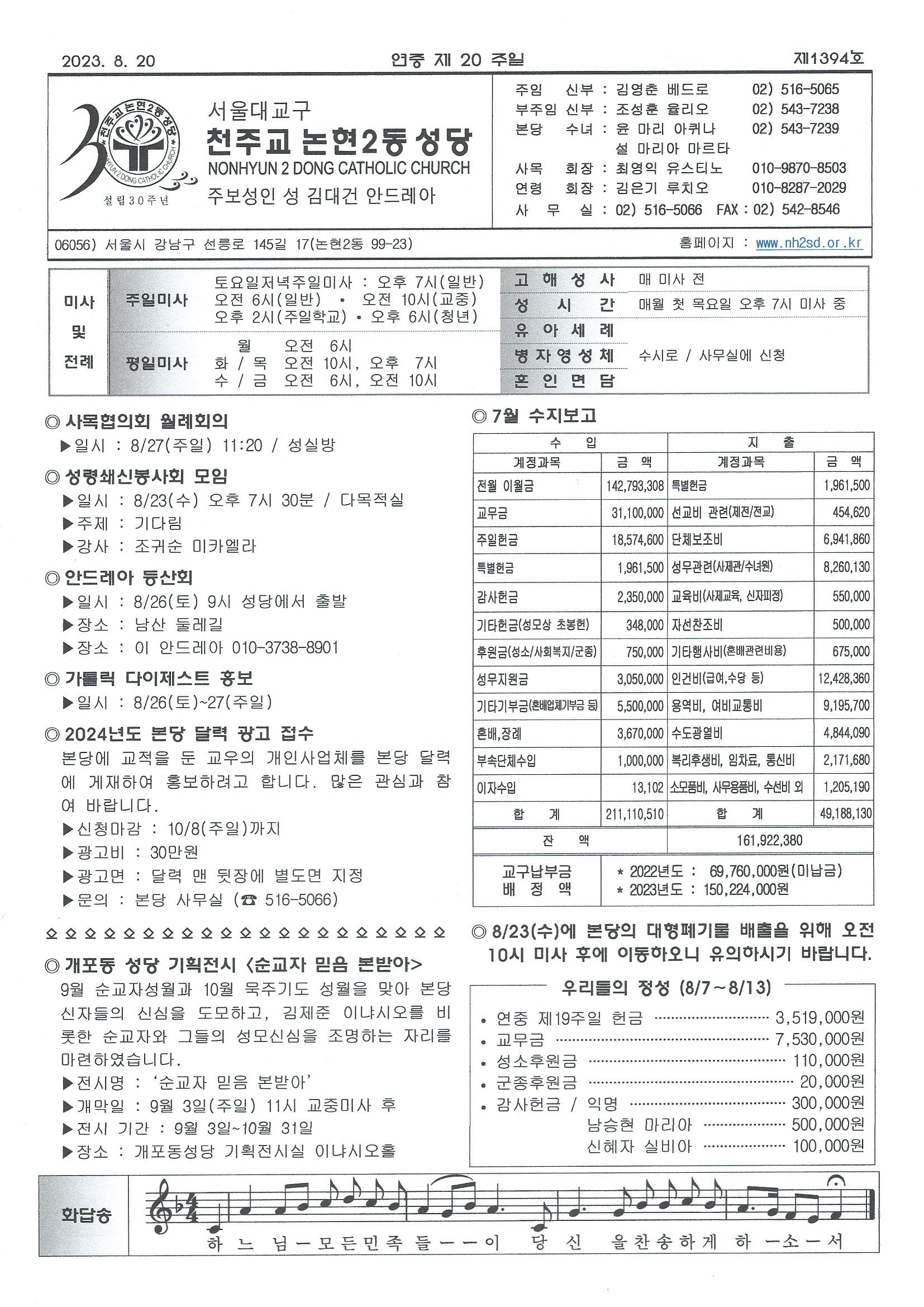 ¿¬Áß Á¦20ÁÖÀÏ(2023³â 8¿ù 20ÀÏ) ÁÖº¸