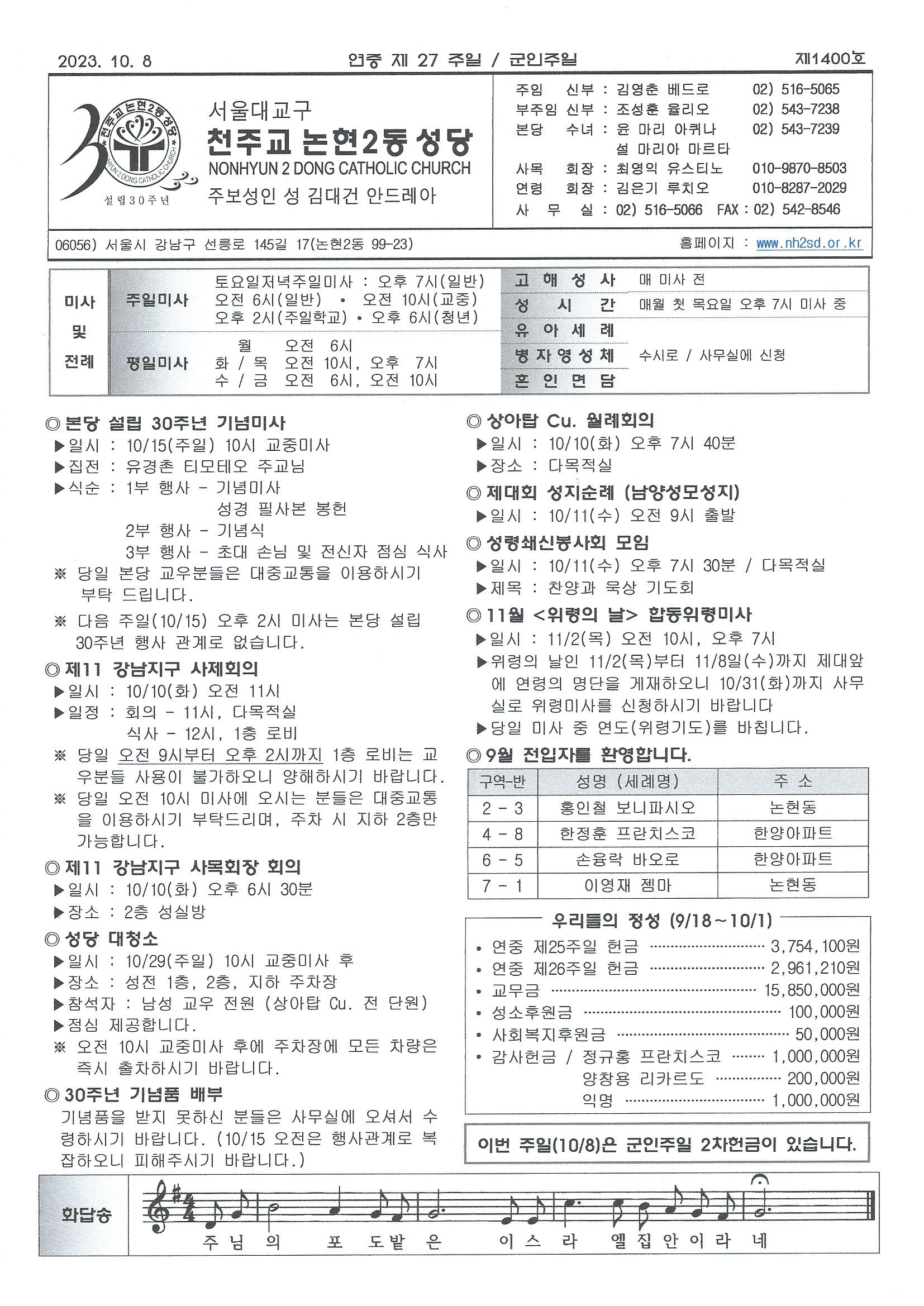 ¿¬Áß Á¦ 27ÁÖÀÏ(2023³â 10¿ù 8ÀÏ) ÁÖº¸