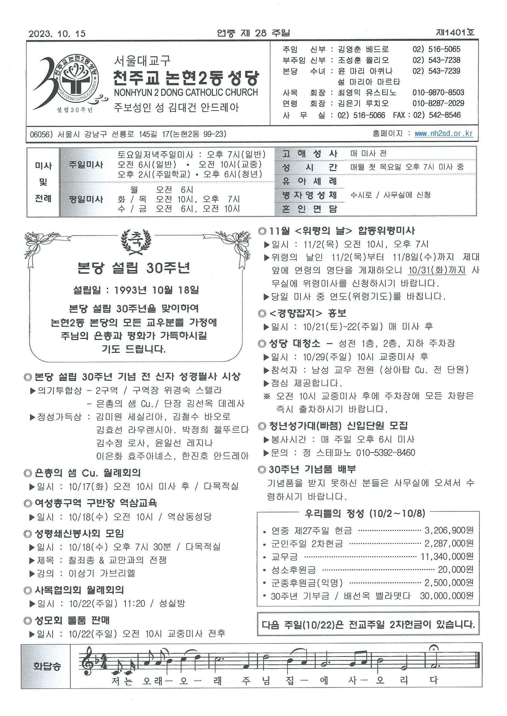 ¿¬Áß Á¦28ÁÖÀÏ(2023³â 10¿ù 15ÀÏ) ÁÖº¸