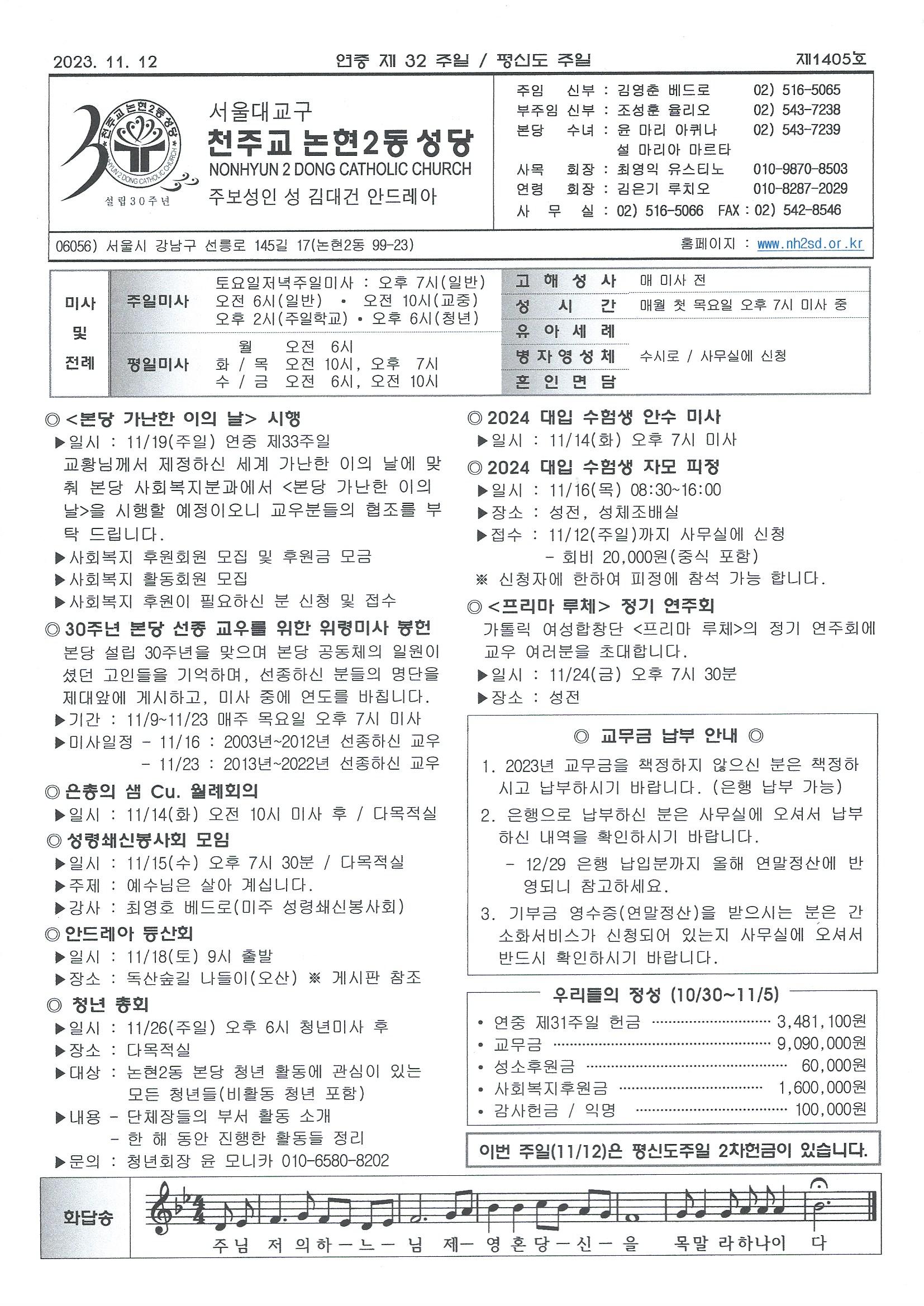 ¿¬Áß Á¦32ÁÖÀÏ(2023³â 11¿ù 12ÀÏ) ÁÖº¸