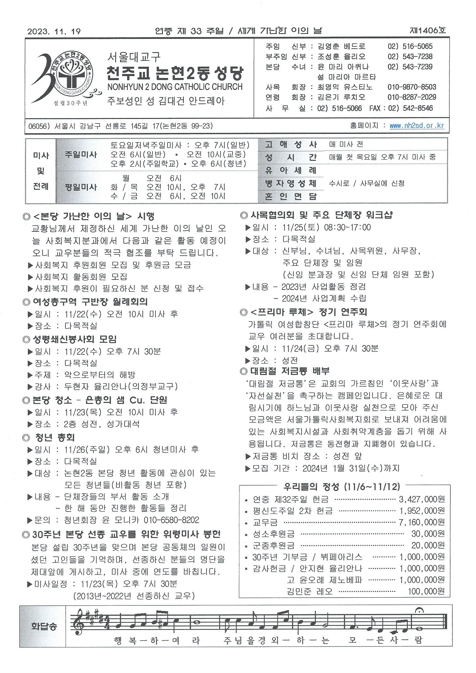 ¿¬Áß Á¦33ÁÖÀÏ(2023³â 11¿ù 19ÀÏ) ÁÖº¸