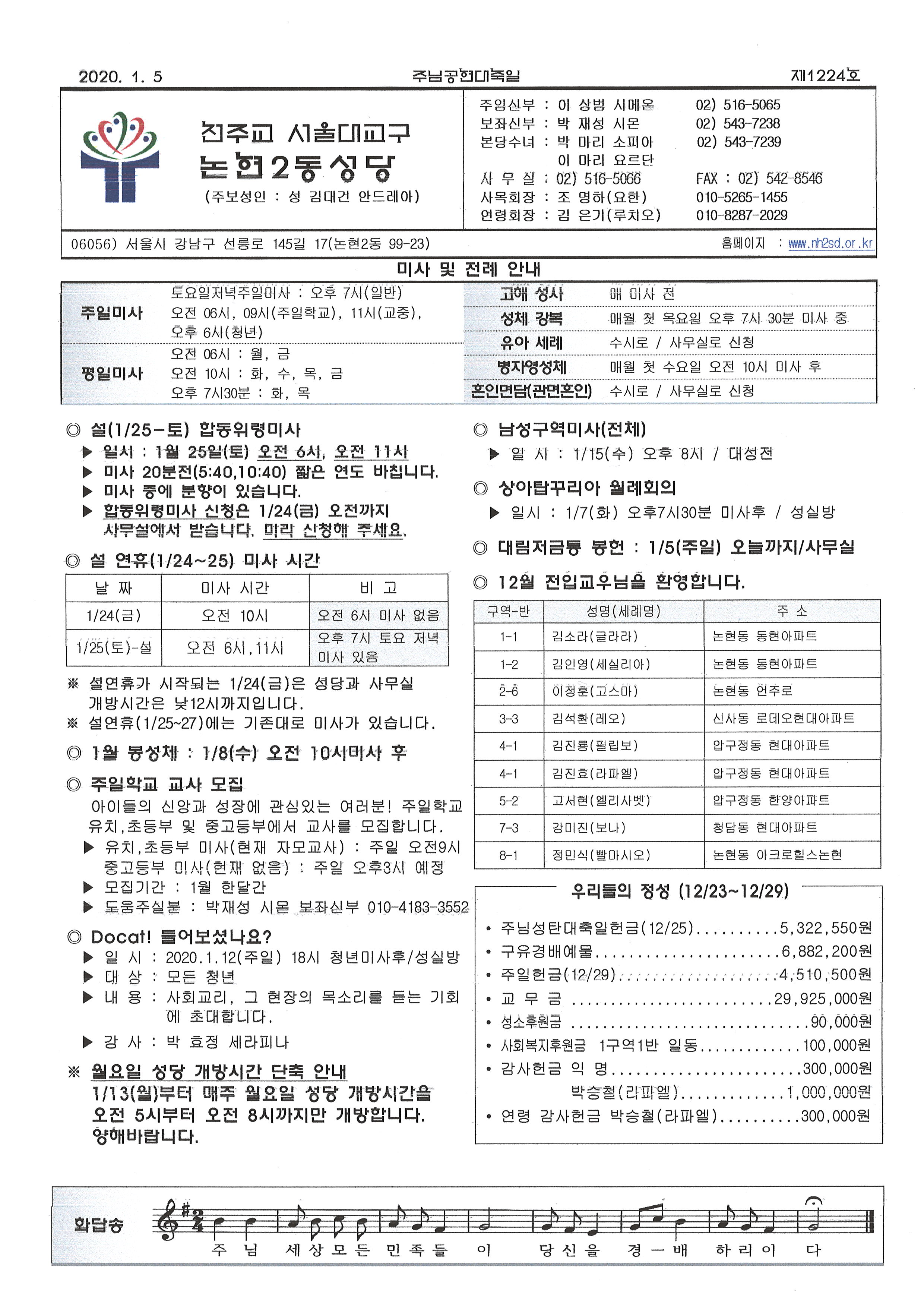 ÁÖº¸(2020³â1¿ù5ÀÏ-ÁÖ´Ô °øÇö ´ëÃàÀÏ)