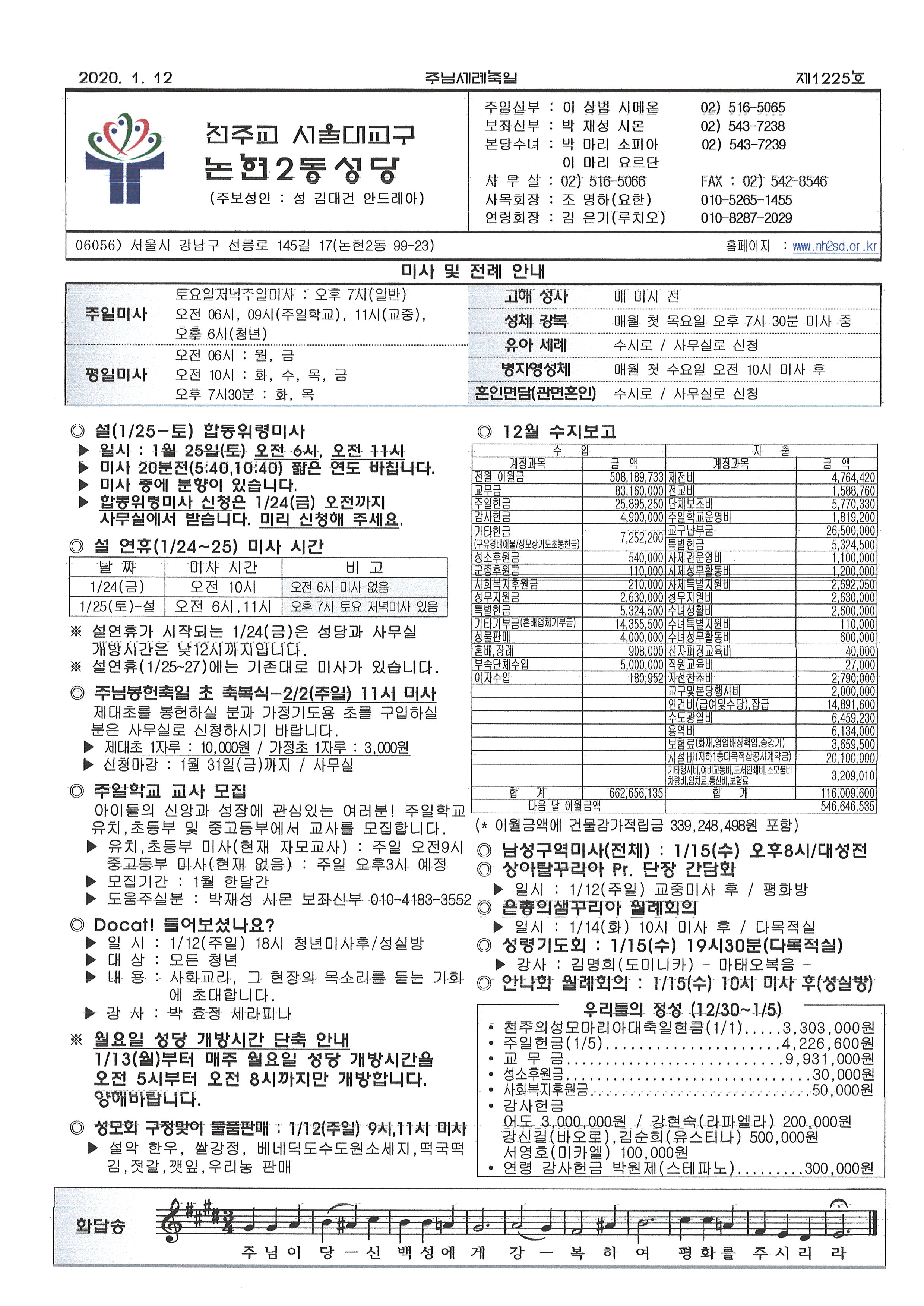 ÁÖº¸(2020³â 1¿ù 12ÀÏ-ÁÖ´Ô¼¼·ÊÃàÀÏ)
