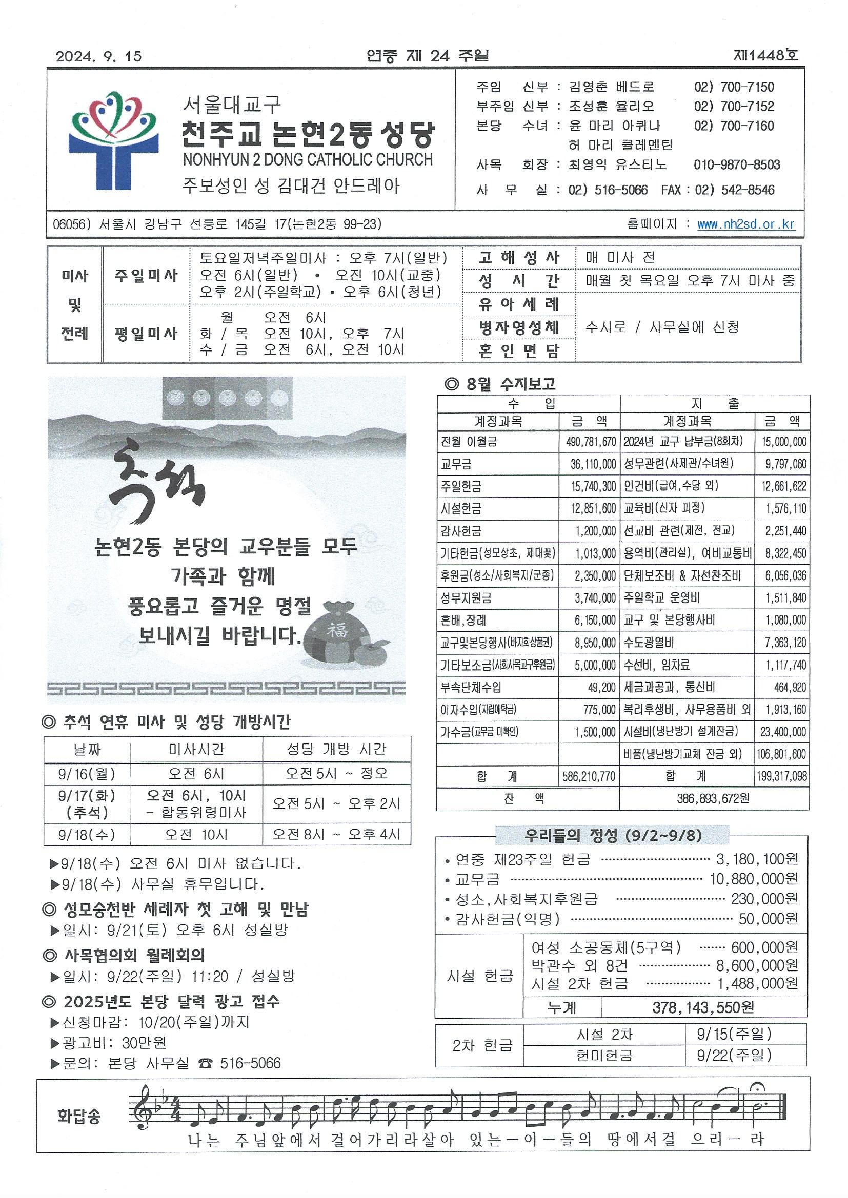 ¿¬Áß Á¦ 24ÁÖÀÏ ÁÖº¸(2024³â 9¿ù 15ÀÏ)