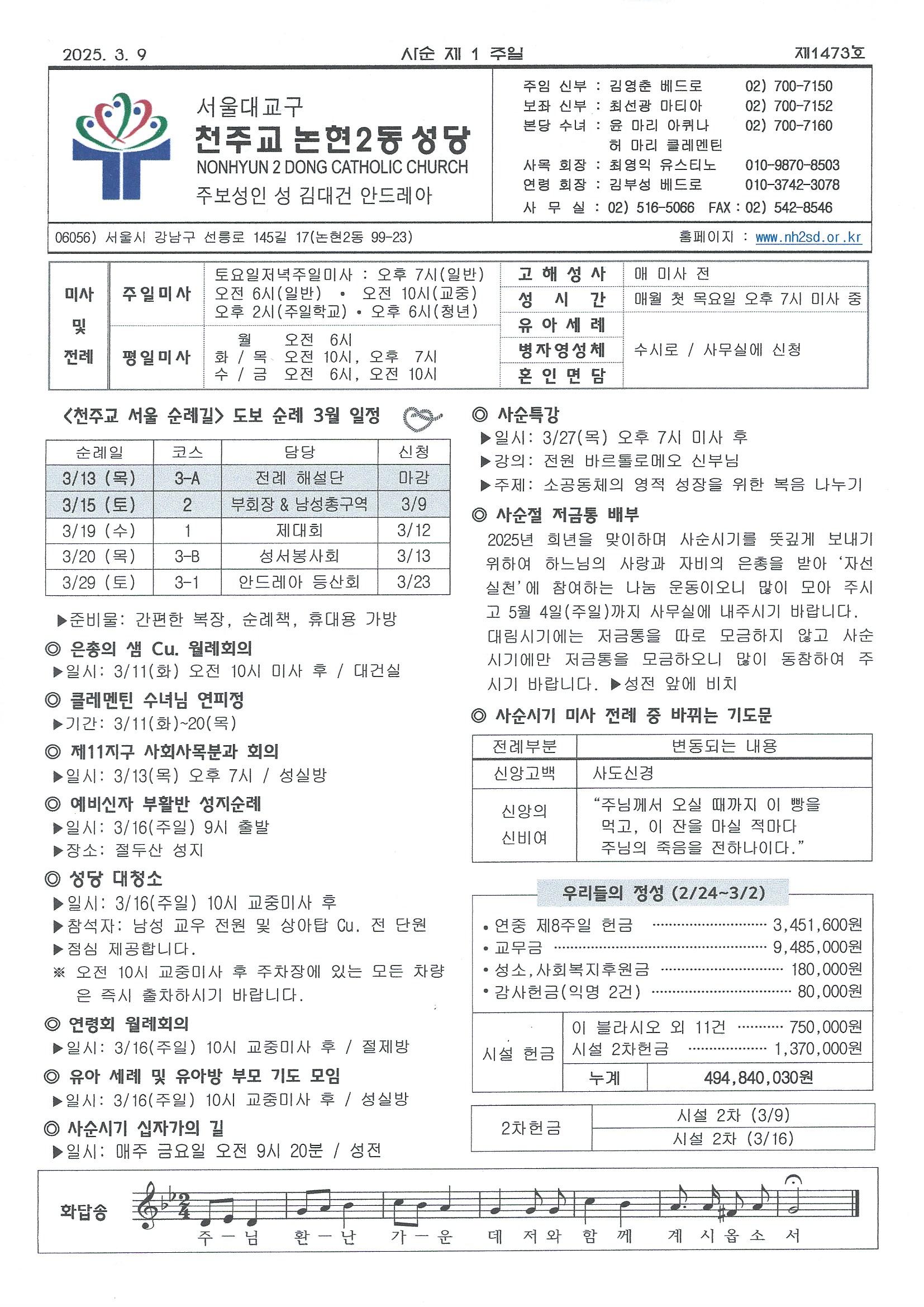 »ç¼ø Á¦1ÁÖÀÏ (2025³â 3¿ù 9ÀÏ) ÁÖº¸
