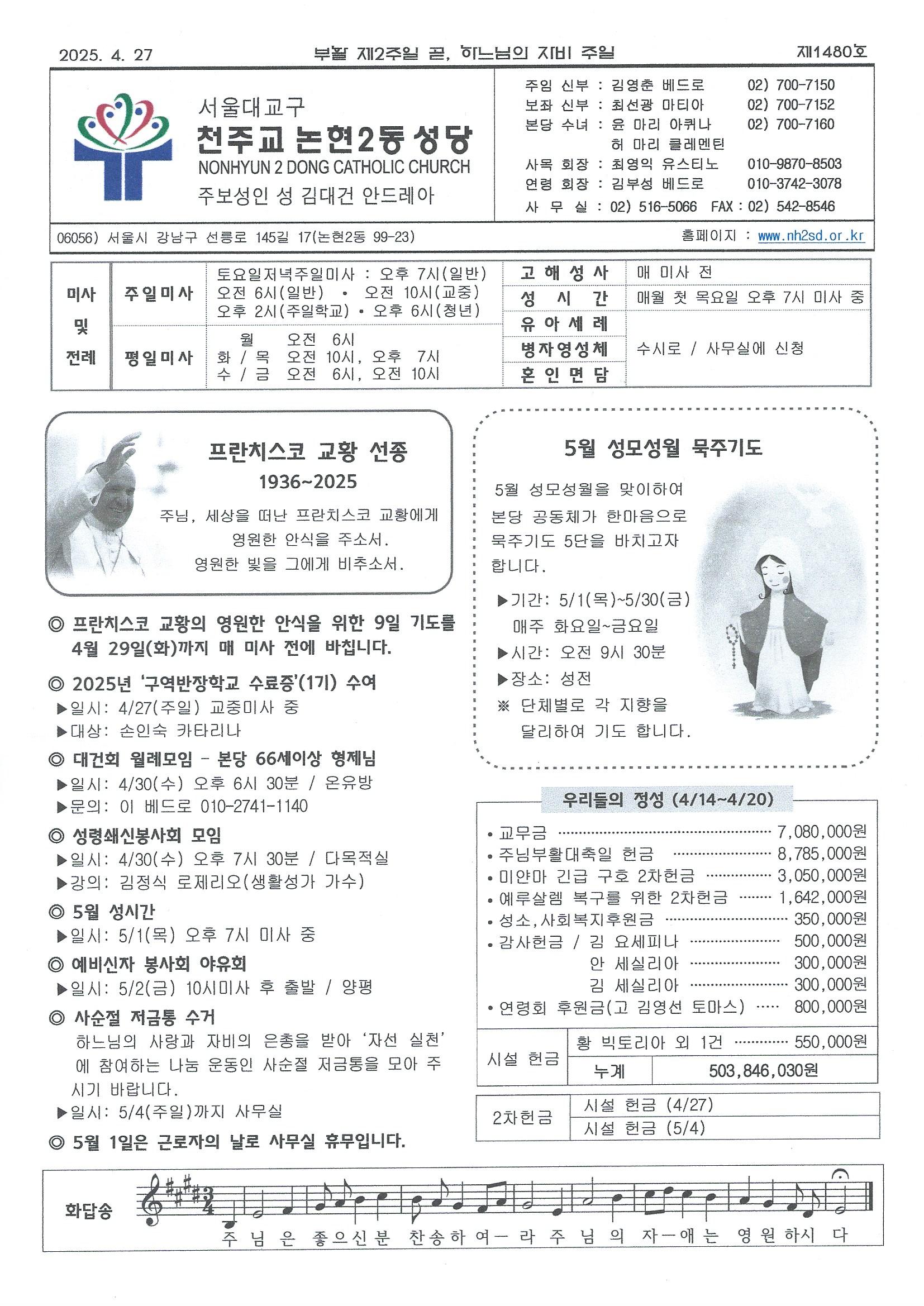 ºÎȰ Á¦2ÁÖÀÏ °ð, ÇÏ´À´ÔÀÇ ÀÚºñÁÖÀÏ(2025³â 4¿ù 27ÀÏ) ÁÖº¸